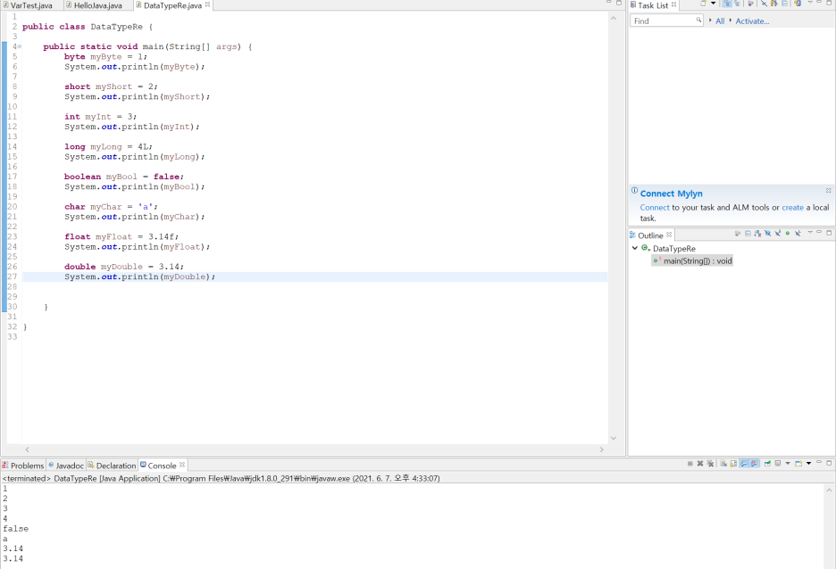 | 자바 공부 기록(2)-암시적 명시적 형변환, 연산자 (0) | 2021.08.13 |