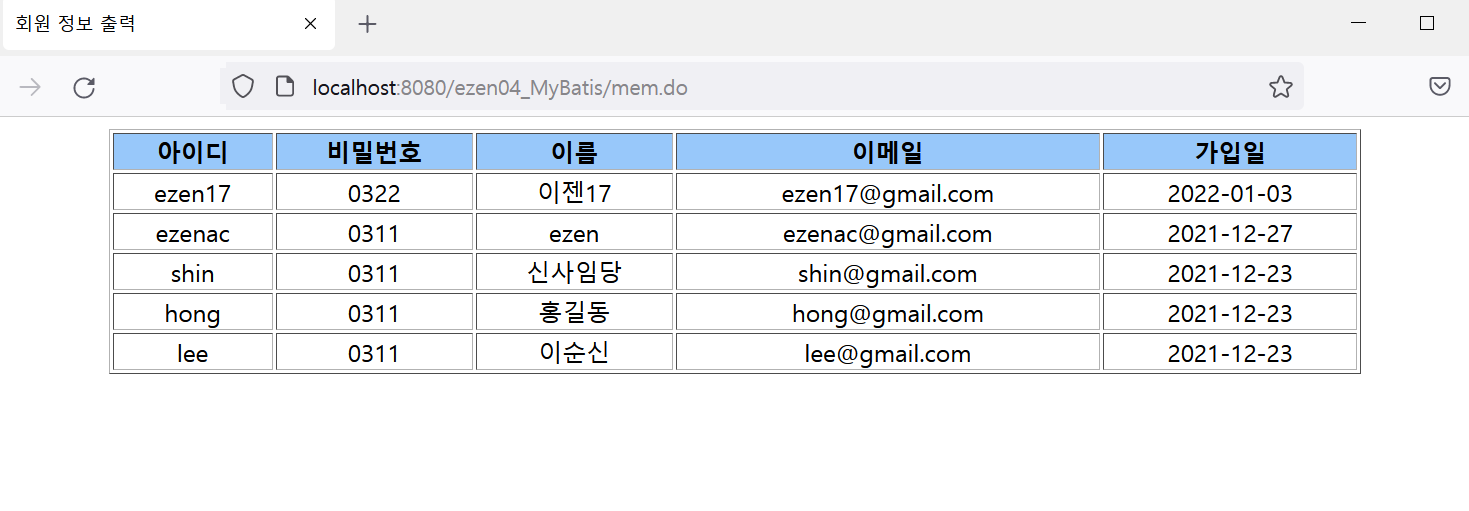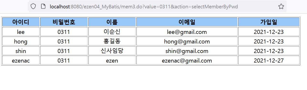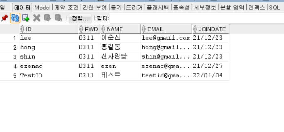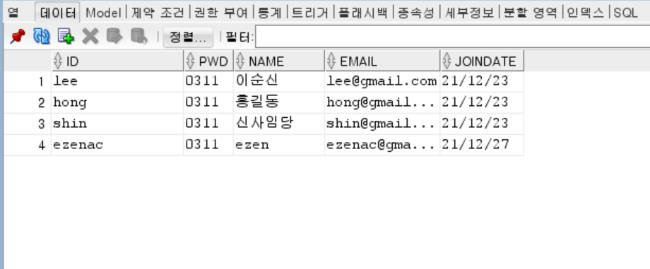 가입하기를 누르면 회원가입 완료 -> DB에도 추가된다.