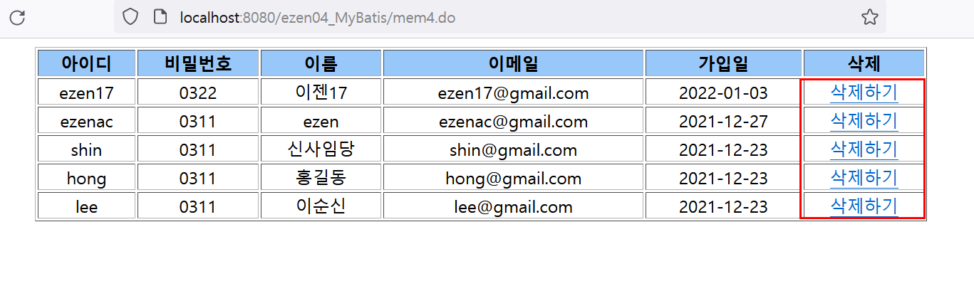 <td><a href="${contextPath }/mem4.do?action=deleteMember&id=${member.id}">삭제하기</a></td>