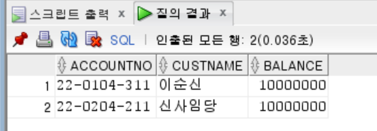 //첫 번째 update문을 실행해 이순신 계좌에서 500만 원 차감함