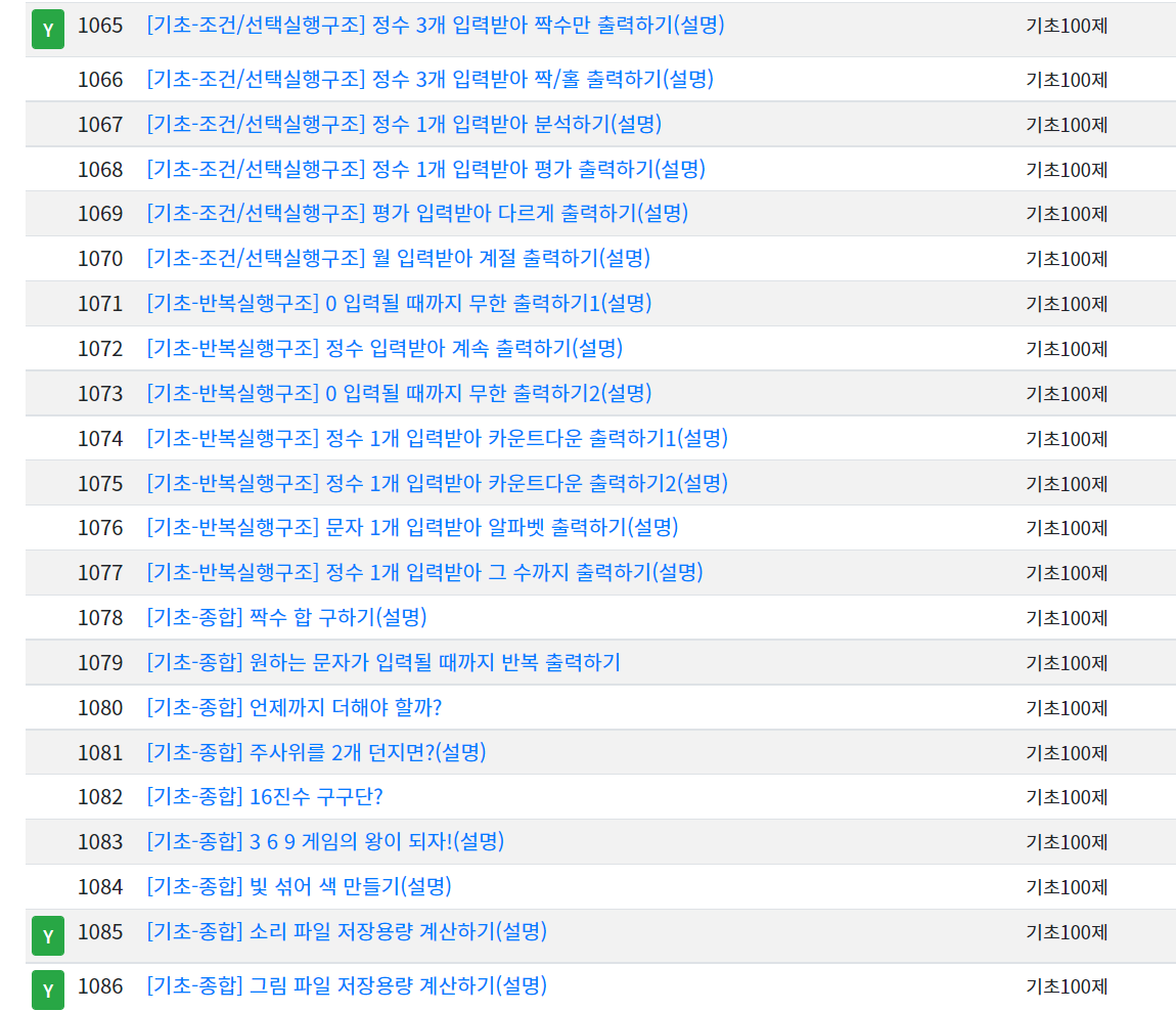 '문제집'으로 보고 하다가 1064번에서 1085번으로 건너뛰어버렸다,,