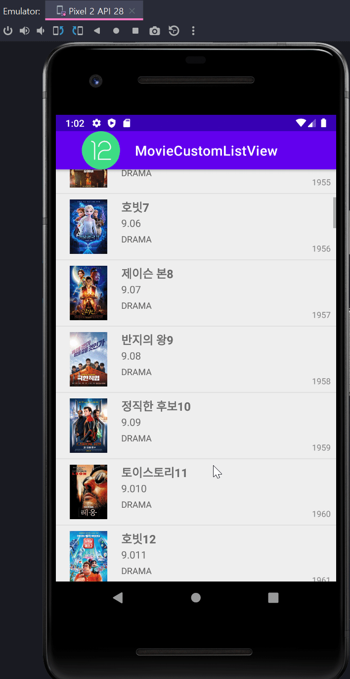 🤍안드로이드 어댑터 뷰 사용하여 영화 포스터 app 만들기
