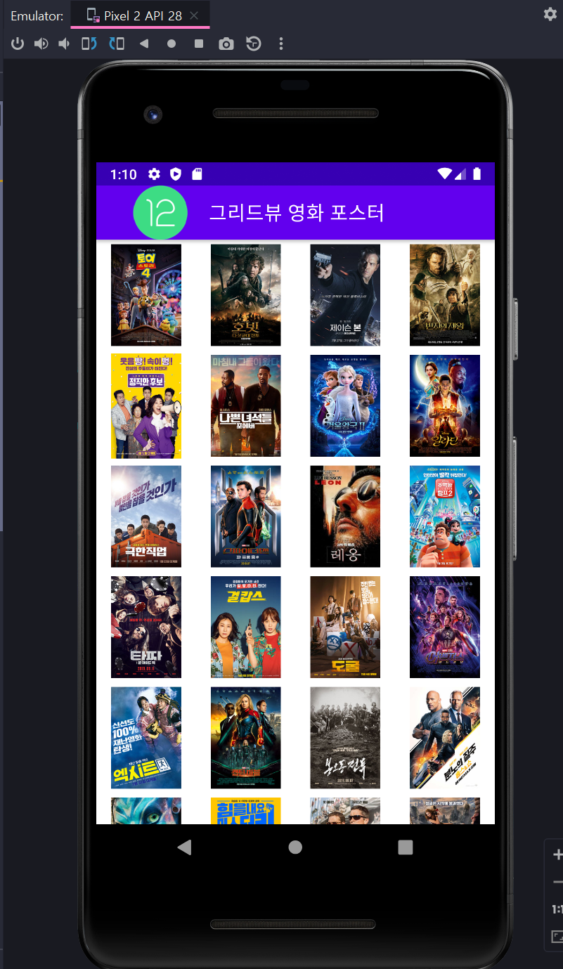 // 영화 포스터를 각 그리드뷰의 칸마다 이미지뷰를 생성해서 보여주게 함.