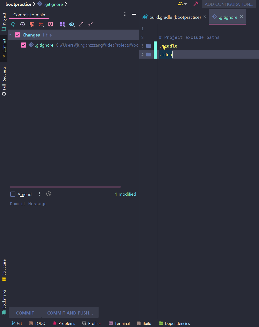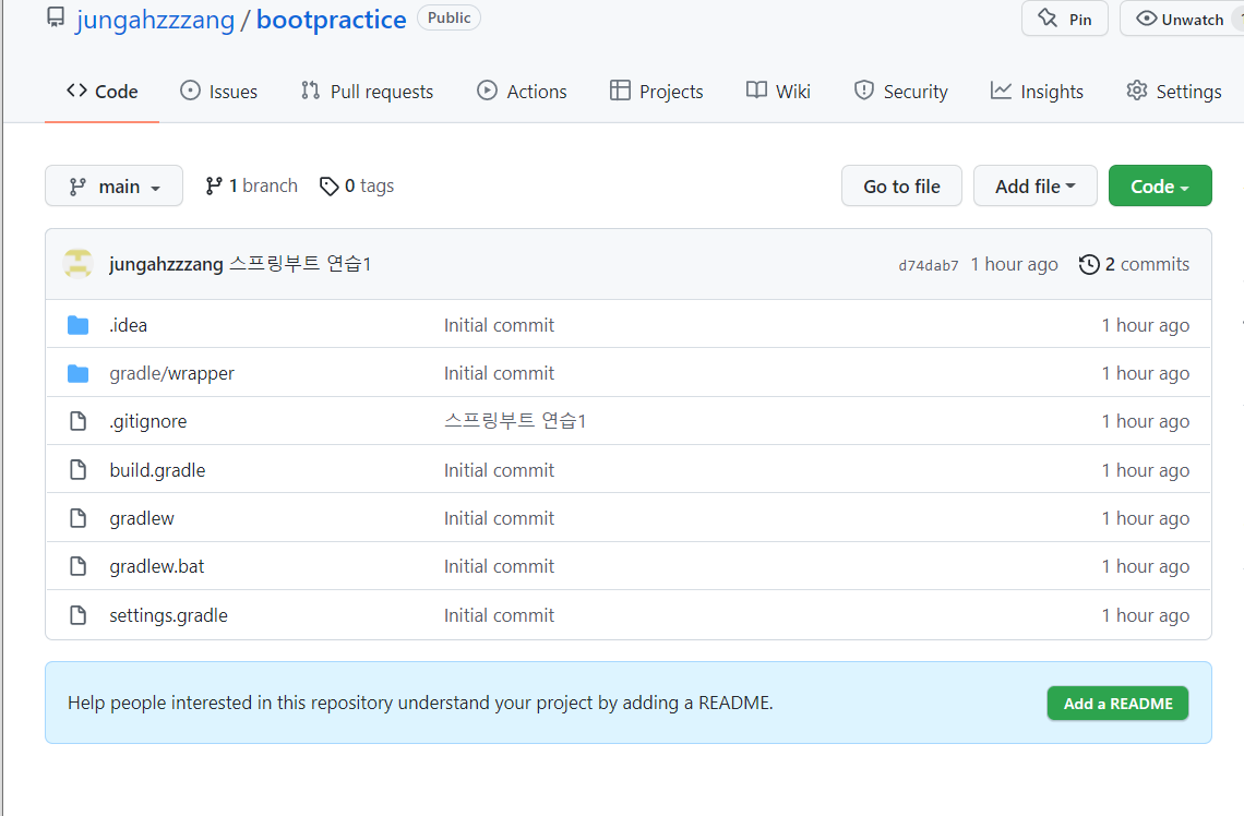 - 깃허브 연결까지 끝. 인텔리제이 스프링부트 개발환경 설정 완료!!