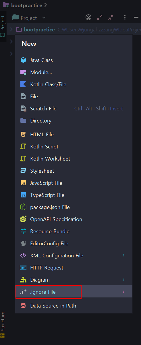 ignore File을 생성 후 commit -> push 해주었다.