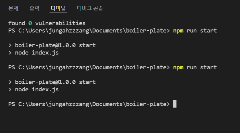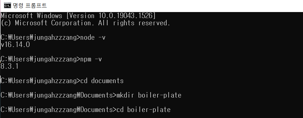- (윈도우 기준) cmd 창에 mkdir boiler-plate 생성