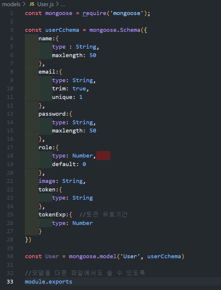 1. model 폴더를 만들고 그 안에 User.js 파일을 만들어준다.