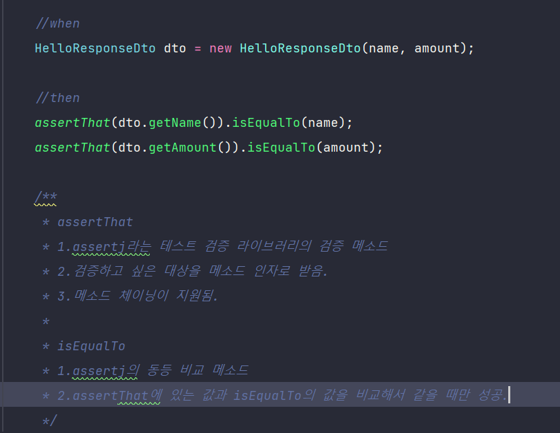 - Junit의 assertThat을 쓰게 되면 is()와 같이 별도 라이브러리가 필요