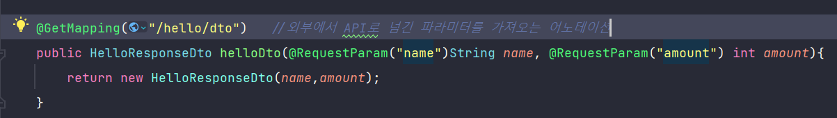 7. HelloController에도 새로 만든 ResponseDto를 사용하도록 코드 추가.
