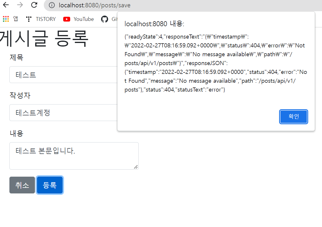 6. 글 등록 실행해보기