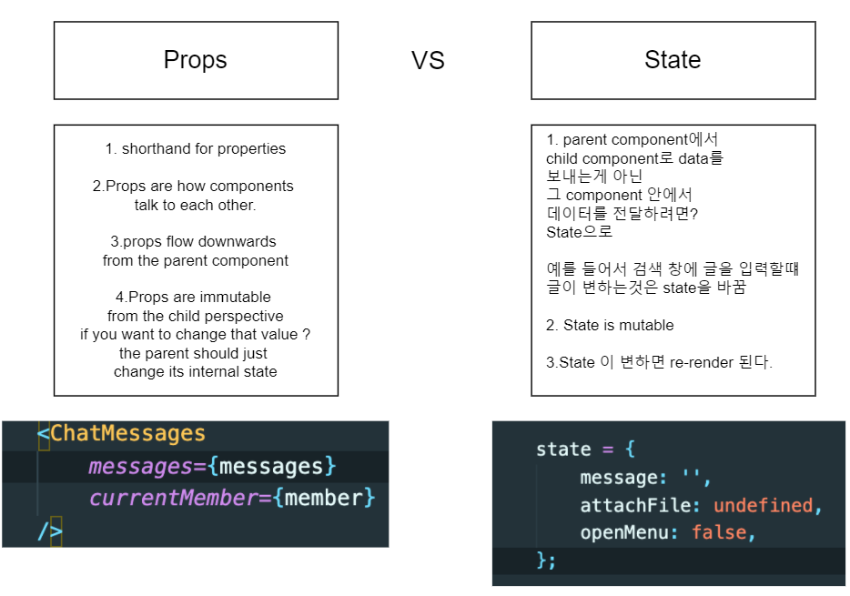 - State는 한 컴포넌트 안에서 유동적인 데이터를 다룰 때 사용되며, 컴포넌트 안에서 데이터를 변경할 수 있다.