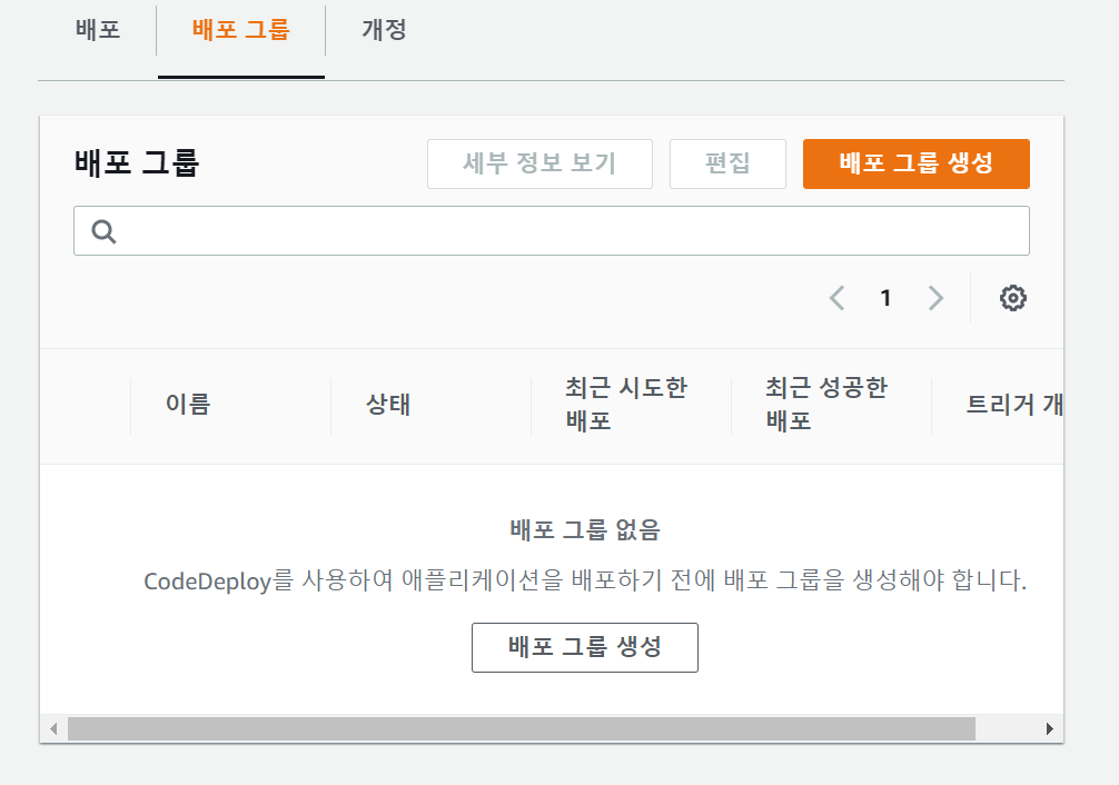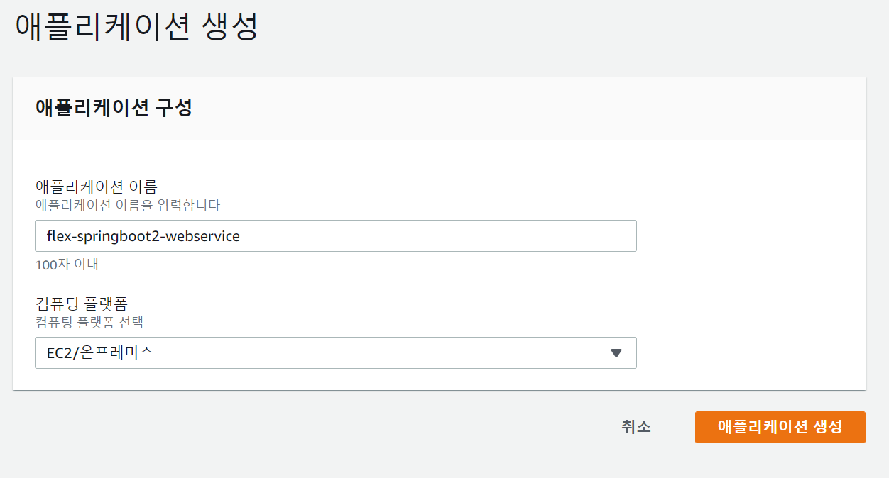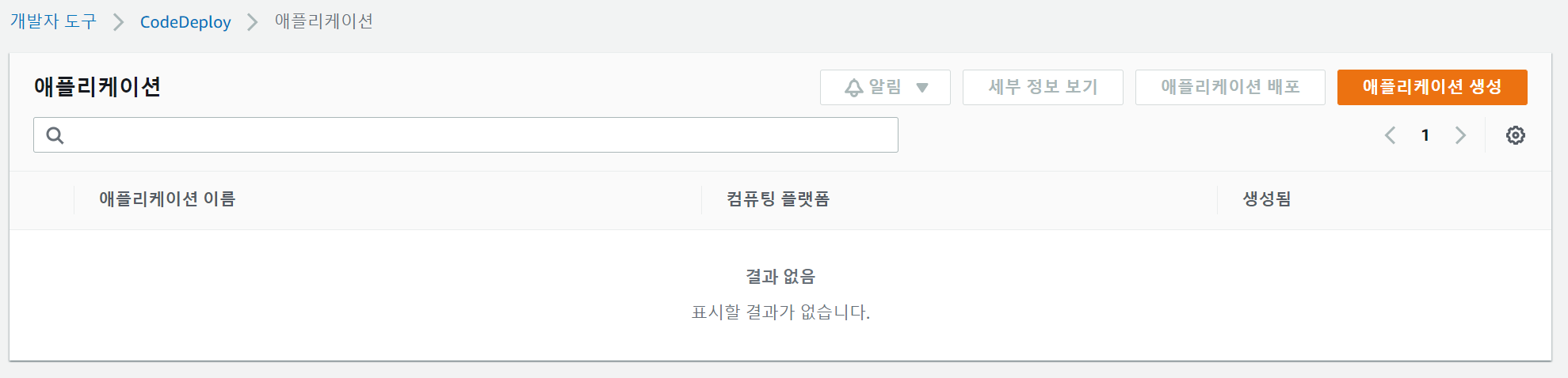 CodeDeploy 서비스로 이동해서 애플리케이션 생성 버튼 클릭