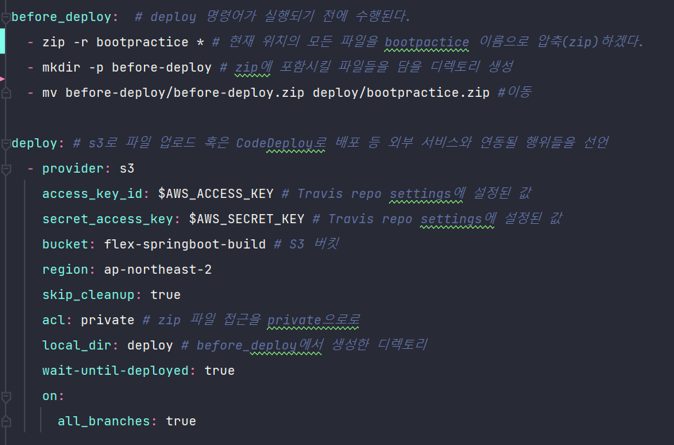 Travis CI에서 빌드하여 만든 Jar파일을 S3에 올릴 수 있도록 travis.yml에 코드