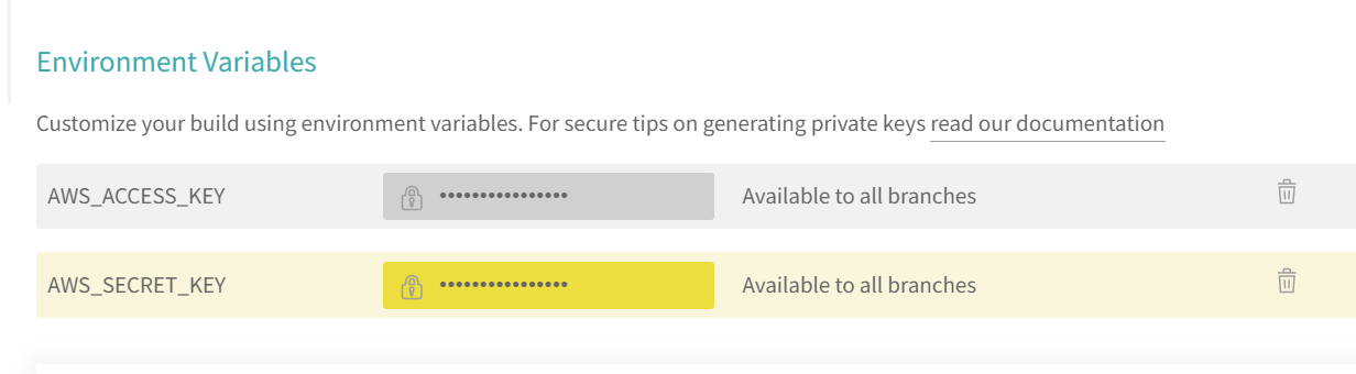 Environment Variables 항목에서 아까 발급받은 키 값 등록