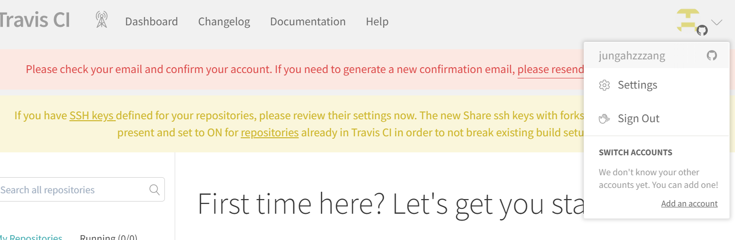 Travix 홈페이지에서 깃허브 계정으로 로그인 후 오른쪽 위에 계정명 -> Settings 클릭