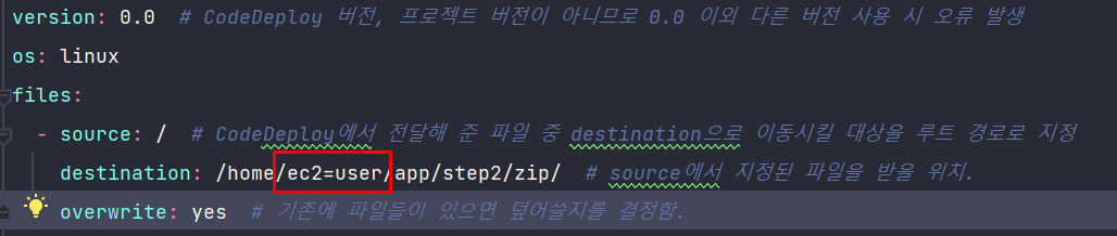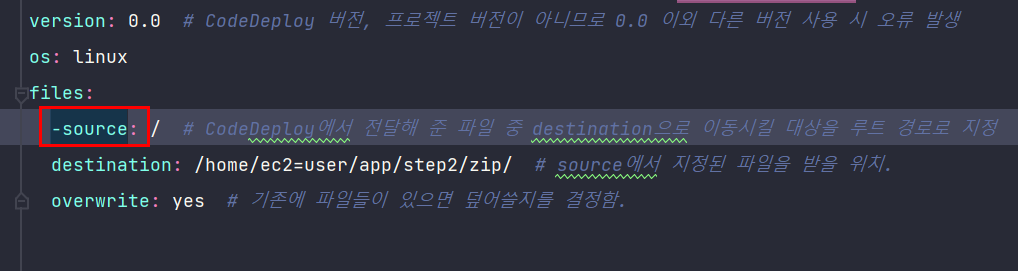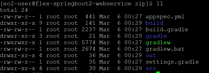 배포가 끝난 다음 cd /home/ec2-user/app/step2/zip 명령어를 실행하면 프로젝트 파일들이 잘 도착한 것을 확인할 수 있다.
