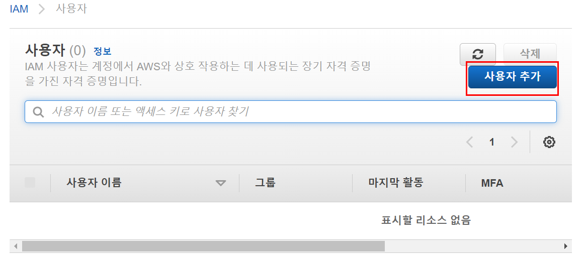 - 일반적으로 AWS 서비스에 외부 서비스가 접근할 수 없음 -> 접근 가능한 권한을 가진 Key를 생성해서 사용해야함.