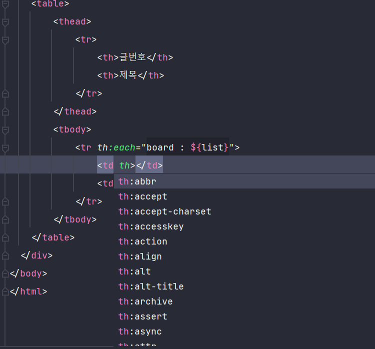 이런 식으로 타임리프 문법이 자동으로 나온다.