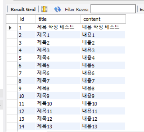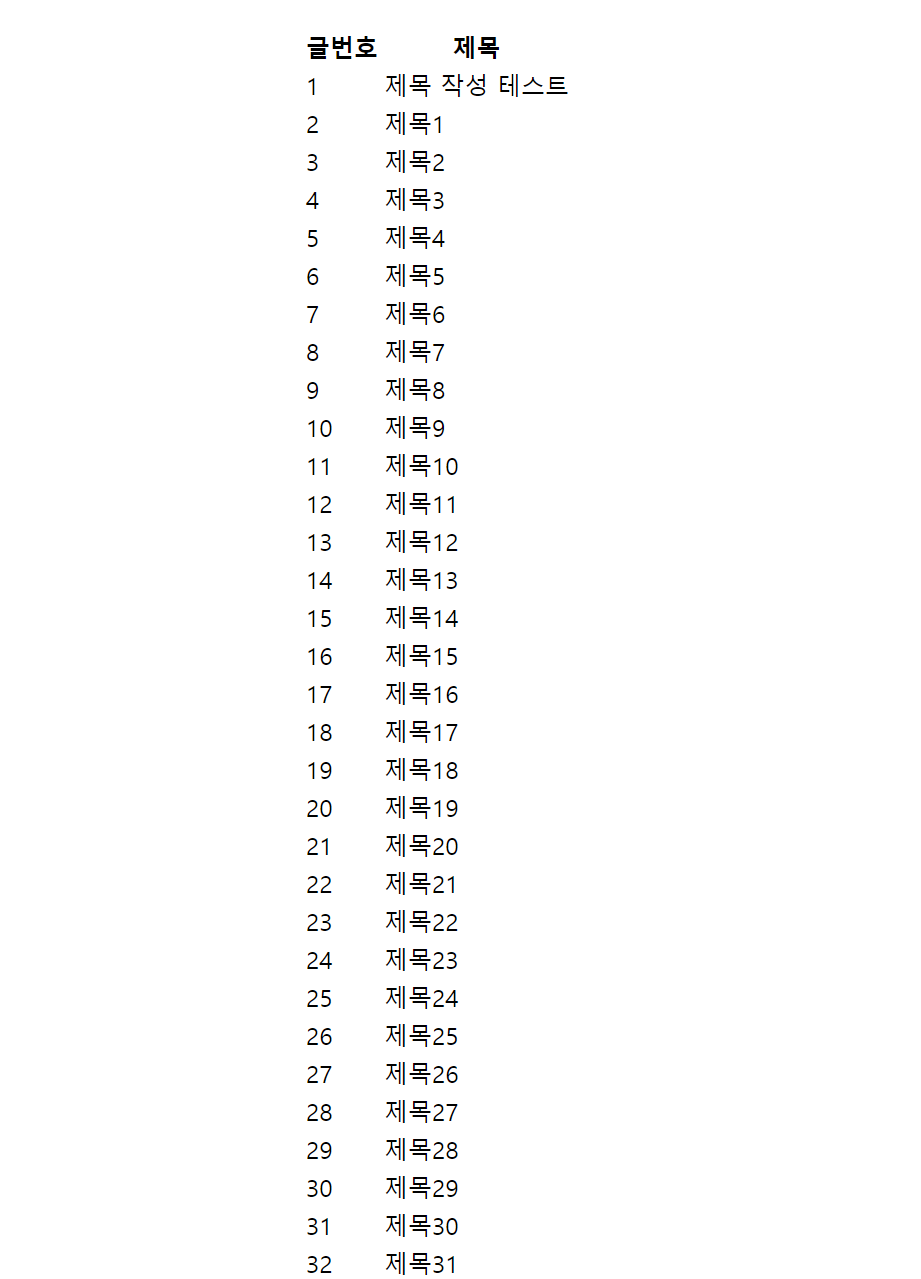 여기까지 작성하고 다시 실행해 보면 디비에 저장된 게시글 목록이 알맞게 출력된다!