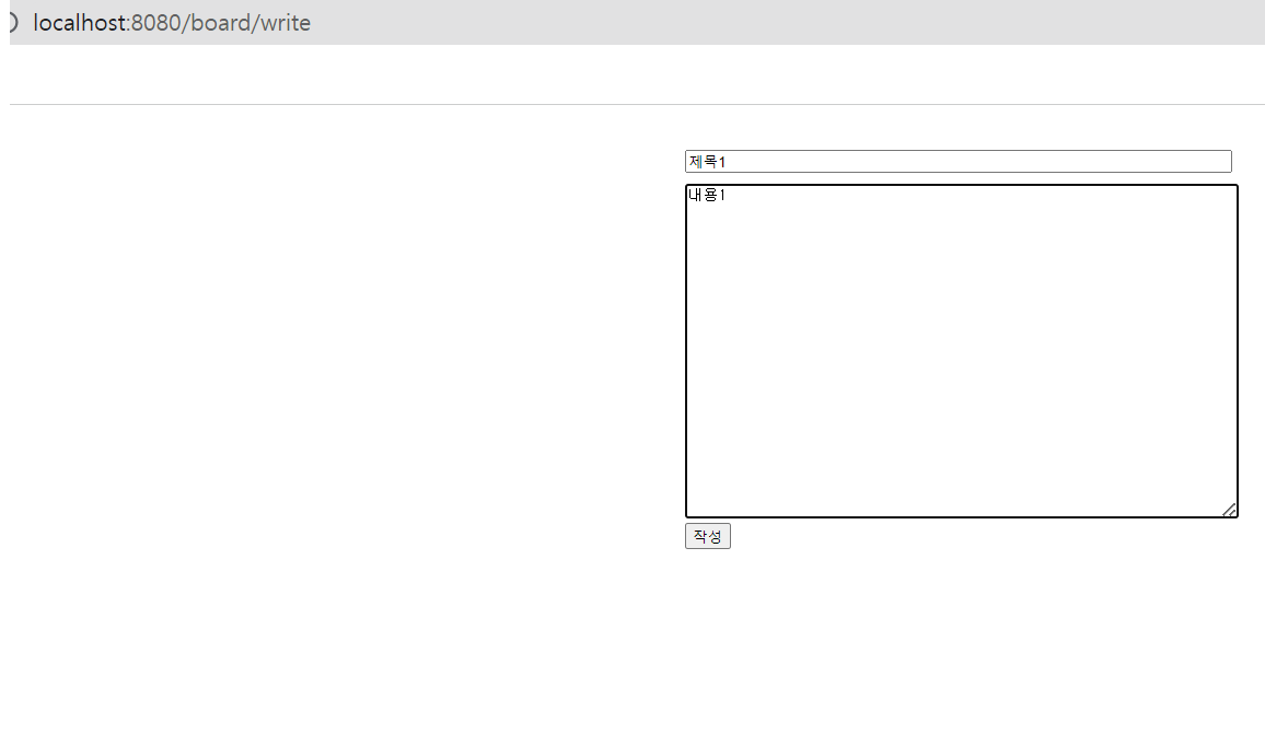 작성 후 실행하면 아래와 같은 투박한(?) 게시글 작성 화면이 나온다.
