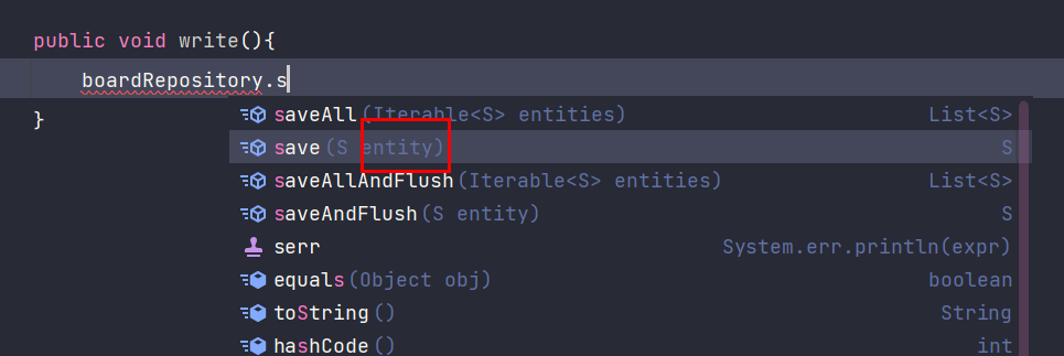 - save : spring data jpa 메서드임. saveAll은 다건 이상의 데이터를 저장, save는 1건을 저장하는 메소드임.