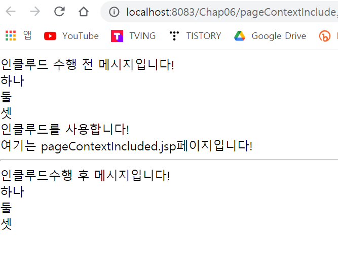 ->포워딩 방식에서는 나타나지 않았던 최초 호출 페이지의 include()메서드 호출 전 내용과 마지막 내용이