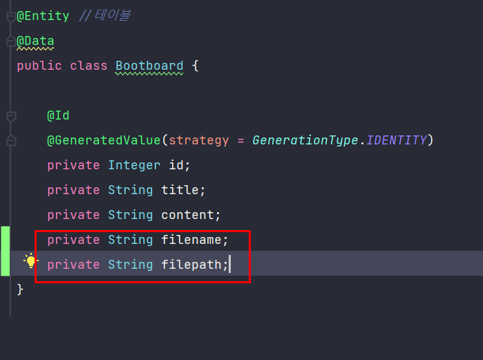 테이블이 수정되었으므로 당연히 엔티티도 수정해 준다.