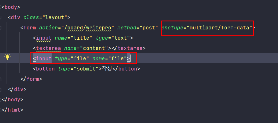 글 작성 시 파일 업로드가 가능하도록 boardwrite.html 수정