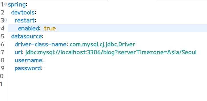 MySQL 데이터베이스 생성 후에는 STS랑 연결하기 위해 application.yml 파일을 생성해 준다.