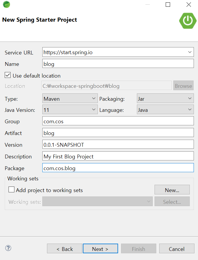 아래와 같은 내용으로 프로젝트를 생성해 준다.