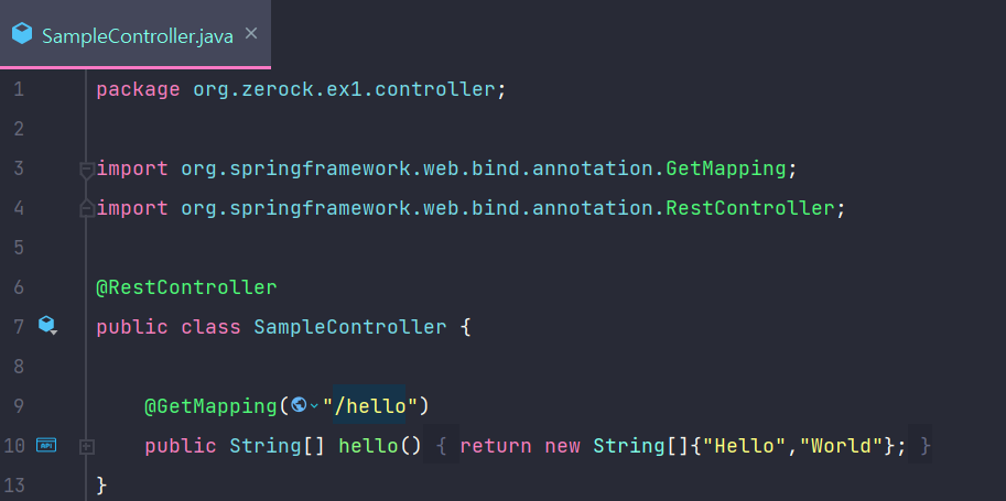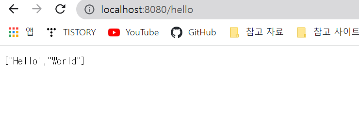 - @RestController를 이용해 별도의 화면 없이 데이터를 전송