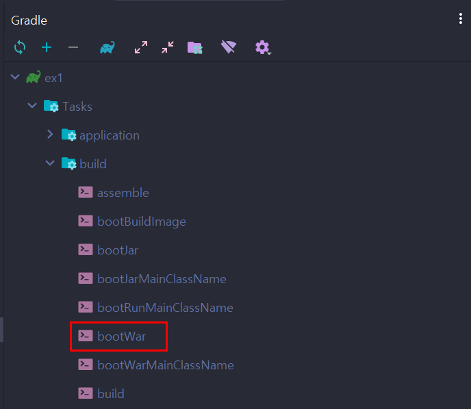 Gradle -> build -> bootjar 항목을 선택하고 실행하면