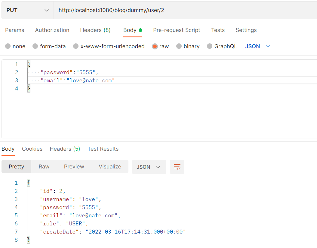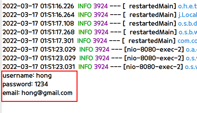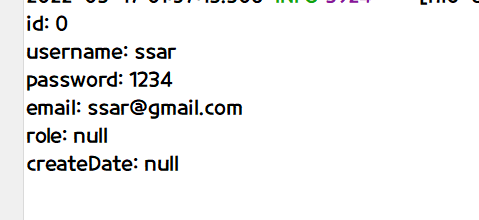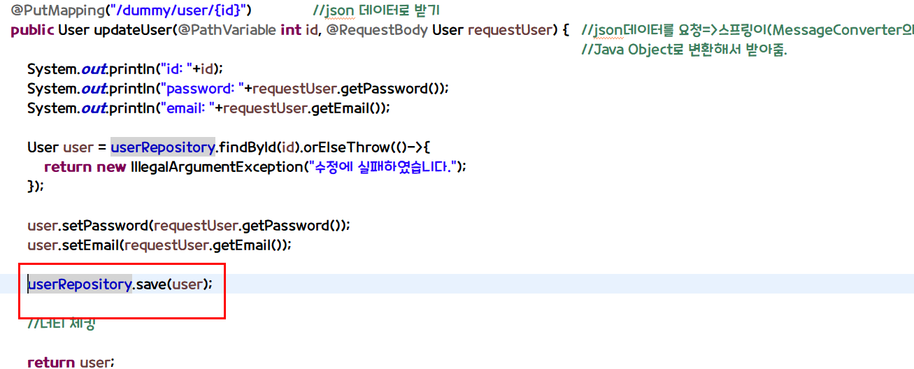 - 이때 setUsername으로 강제로 username을 넣어줄 수 있는데 이유는 save 함수는 id를 전달하여 데이터가 없으면 insert, 있으면 update를 해주기 때문이다.