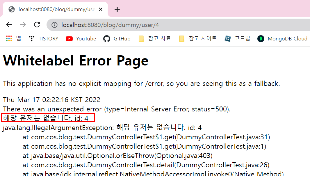 없는 회원을 조회하면 아래와 같이 뜨도록