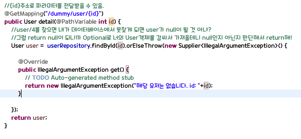 1. 특정 회원 조회하기 : @PathVariable int id 사용