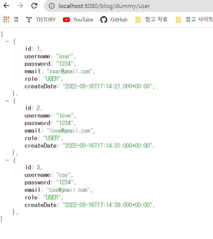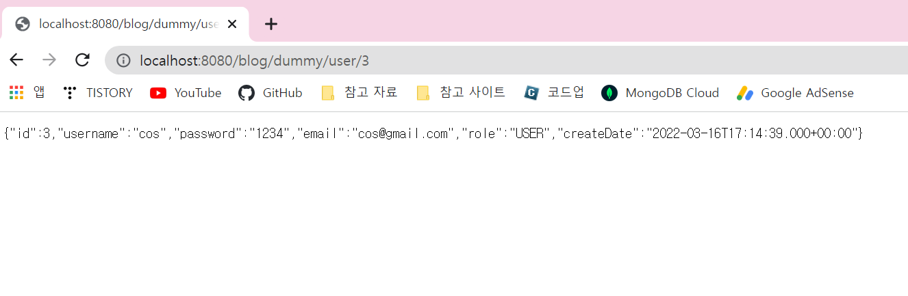 Get매핑이므로 브라우저에서 조회 가능하다.