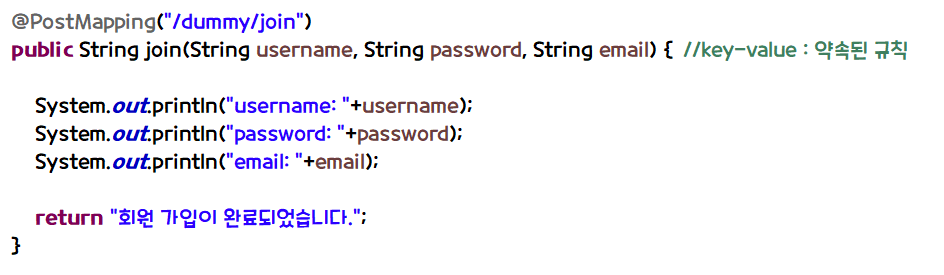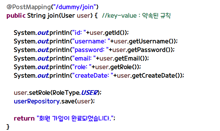 DummyController 클래스를 만들고 회원가입 코드를 작성한다.