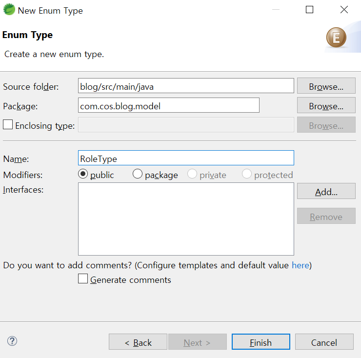 이때 Enum을 사용할 수 있다. EnumType 클래스를 생성해준다.