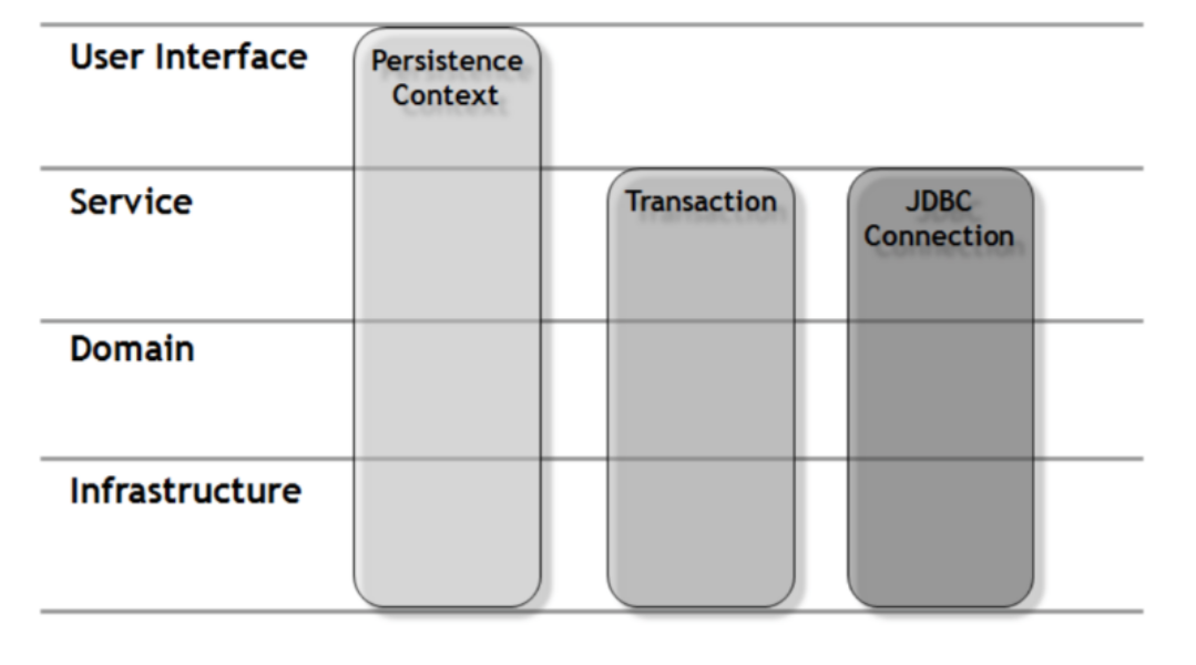 - 클라이언트 요청이 들어오면 서블릿 필터 or 스프링 인터셉터에서 영속성 컨텍스트를 생성하는데 이 시점에서 트랜잭션은 시작하지 않음!