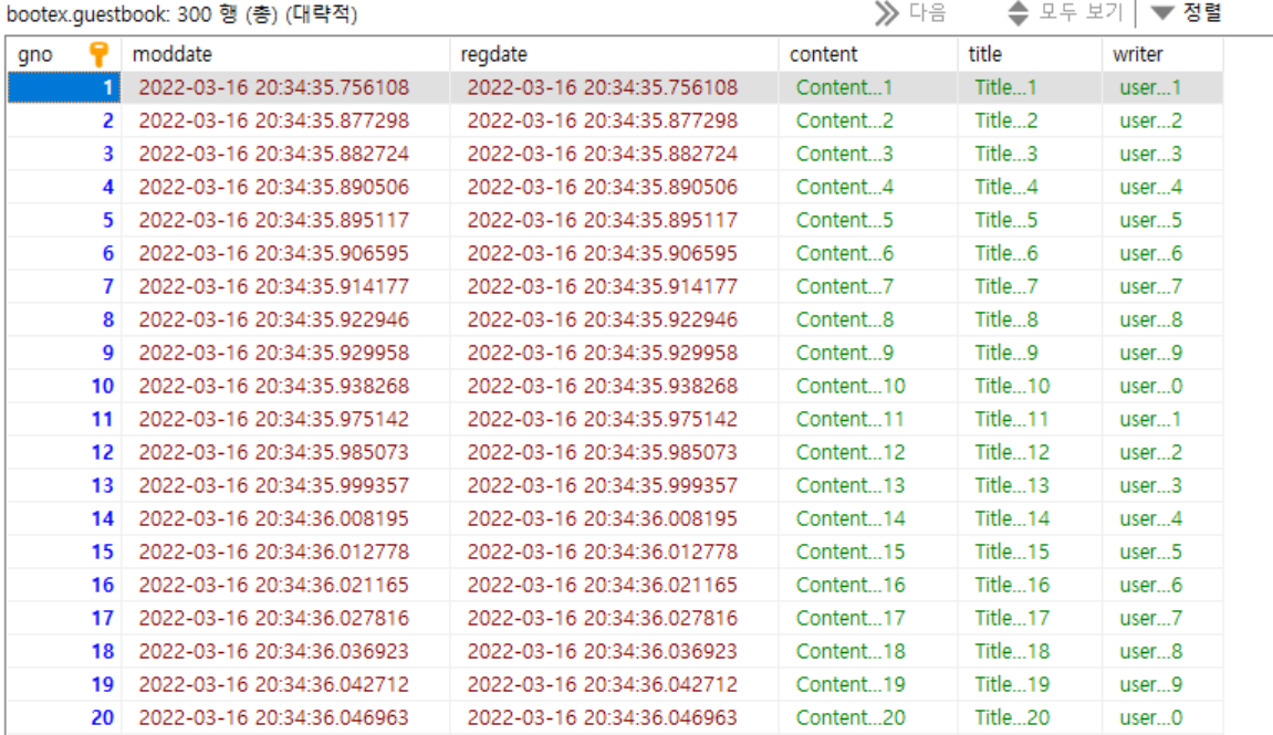 | 목록 | /guestbook/list | GET | 목록/페이징/검색 | |