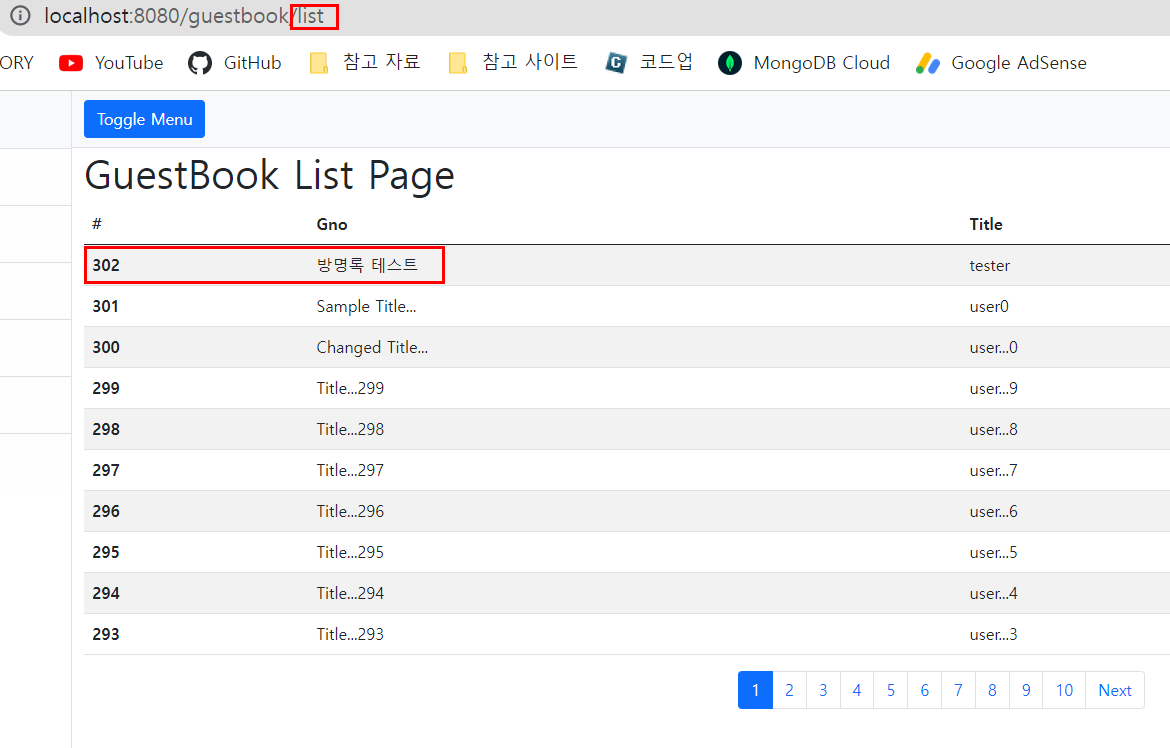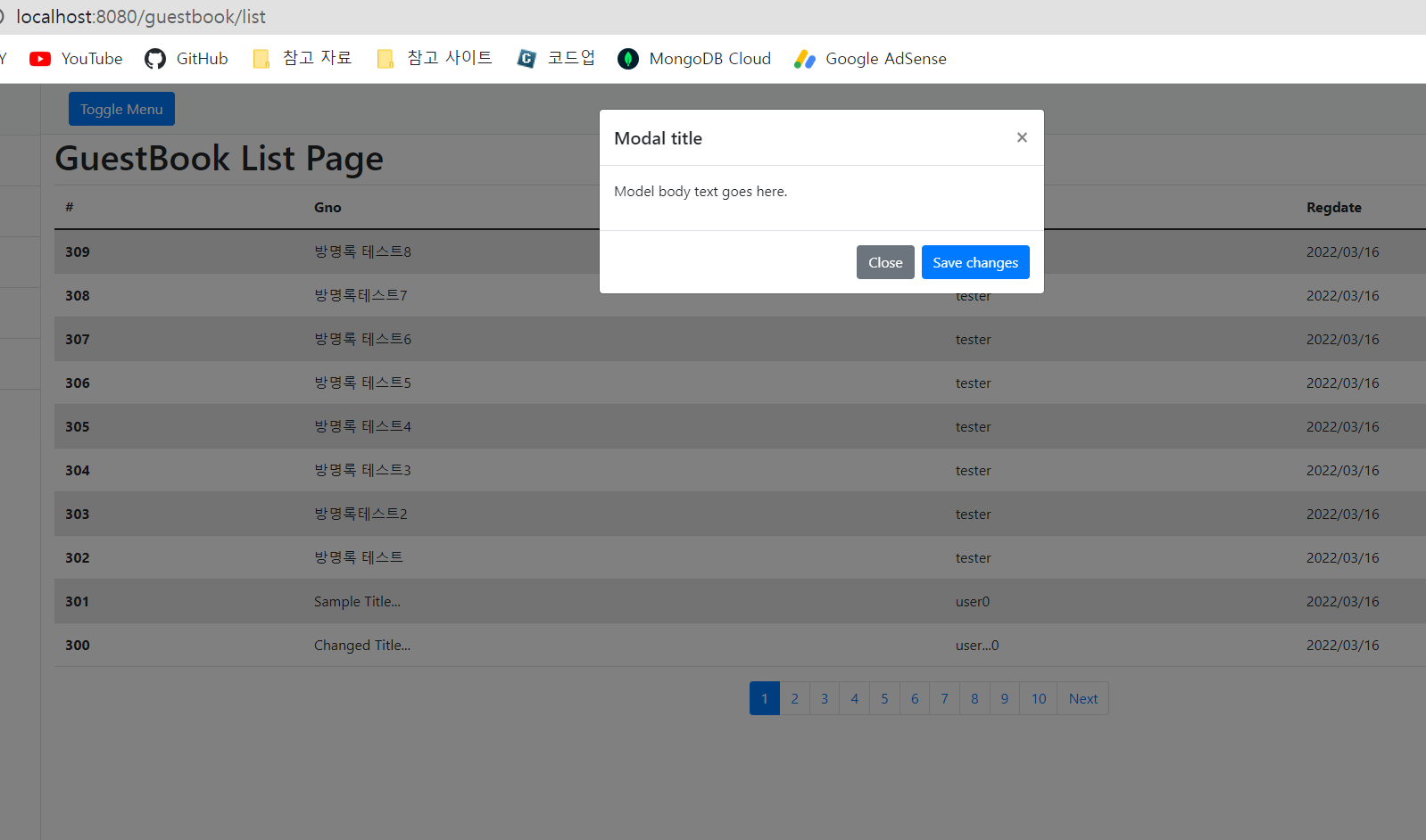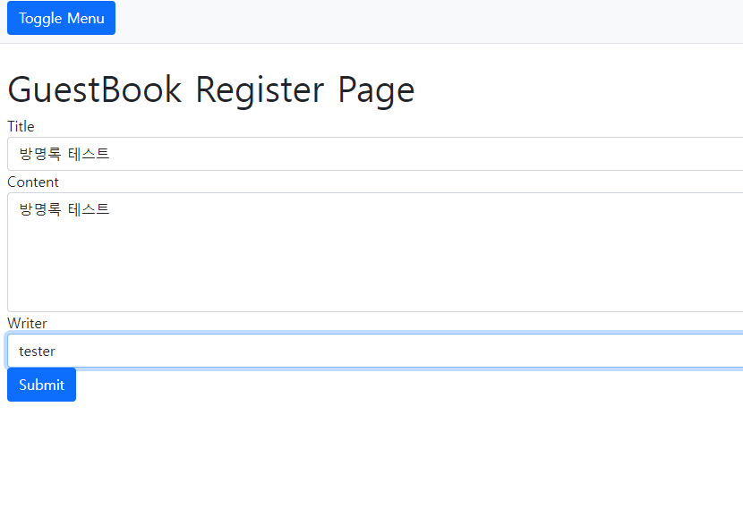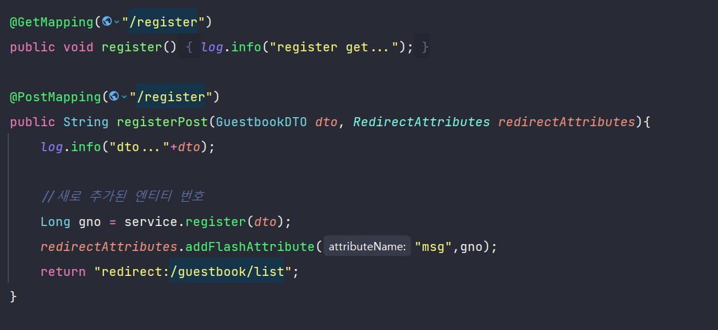 | /guestbook/register | POST | 등록 처리 | /guestbook/list | |