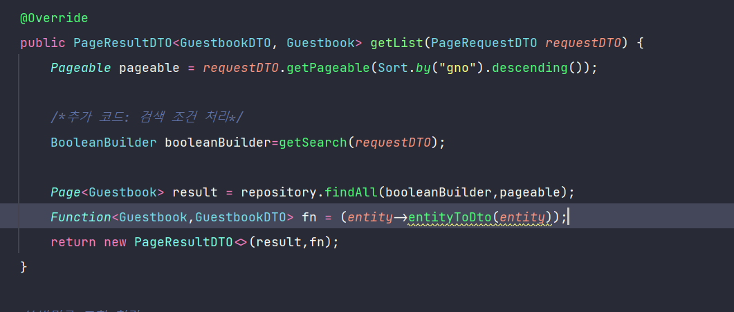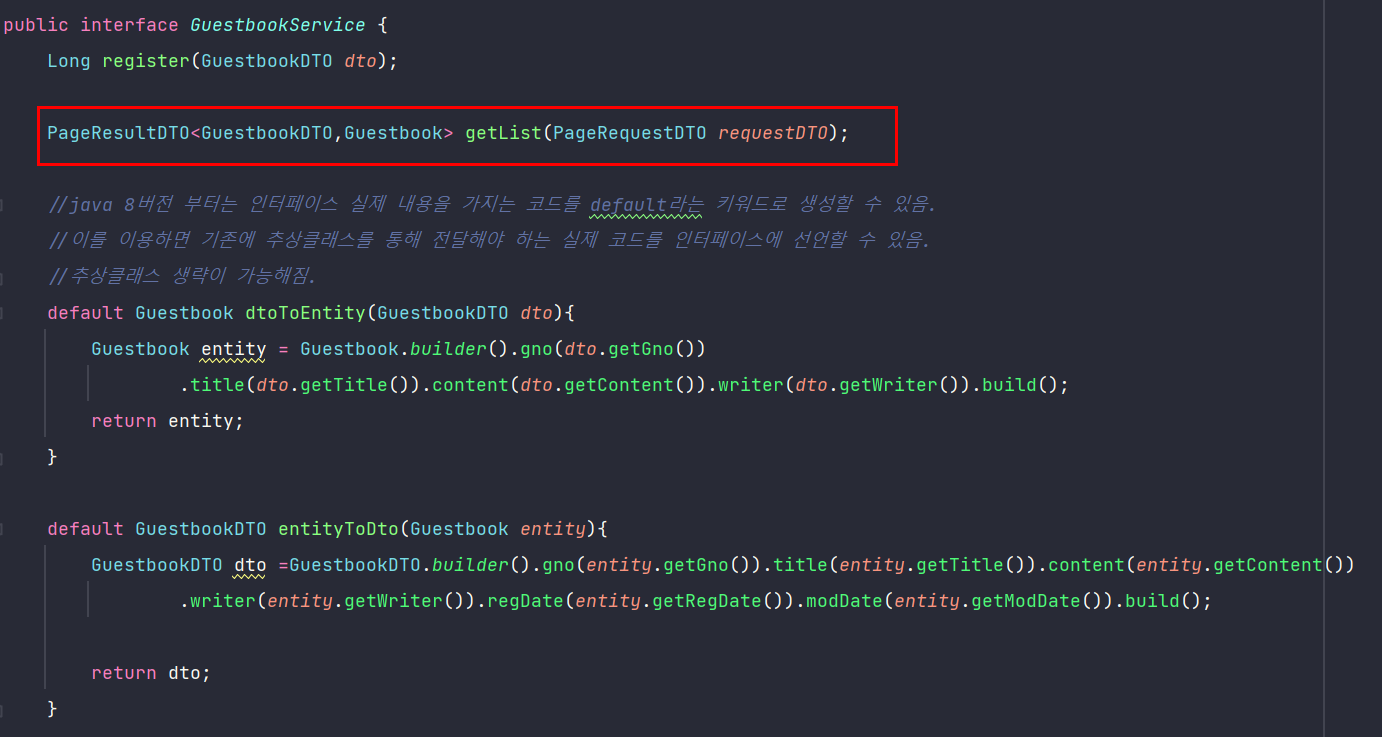 아래 코드를 PageResultDTO 클래스에 추가한다.
