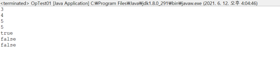 비교 연산자를 사용한 결과 데이터 타입은 항상 boolean 이다!!!