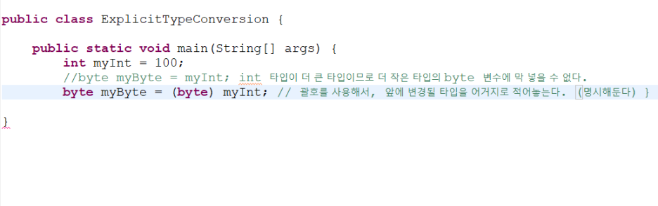 명시적 형변환을 사용할 때 작은 데이터 타입의 변수에 들어갈 수 있는 값의 범위를 가진 것인지