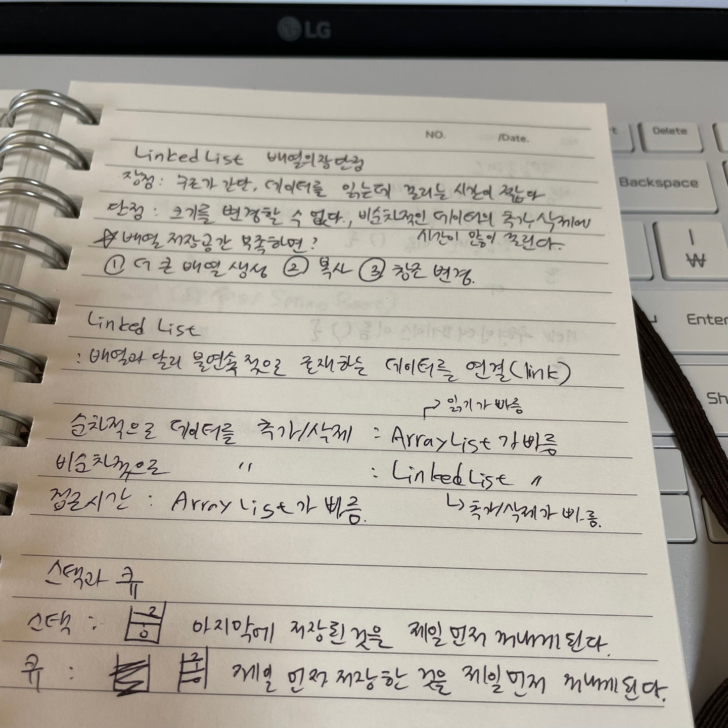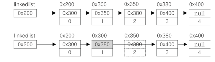 - 배열과 달리 LinkedList는 불연속적으로 존재하는 데이터를 연결(link)