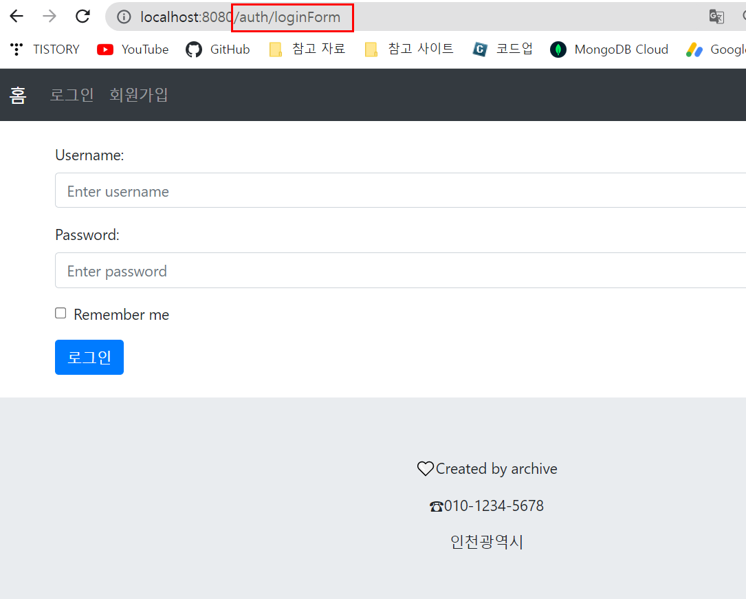 4. 인증없이 접근할 수 있도록 설정해놓은 /auth/ 주소로 접속하면 페이지가 잘 뜨는 것을 확인할 수 있다.