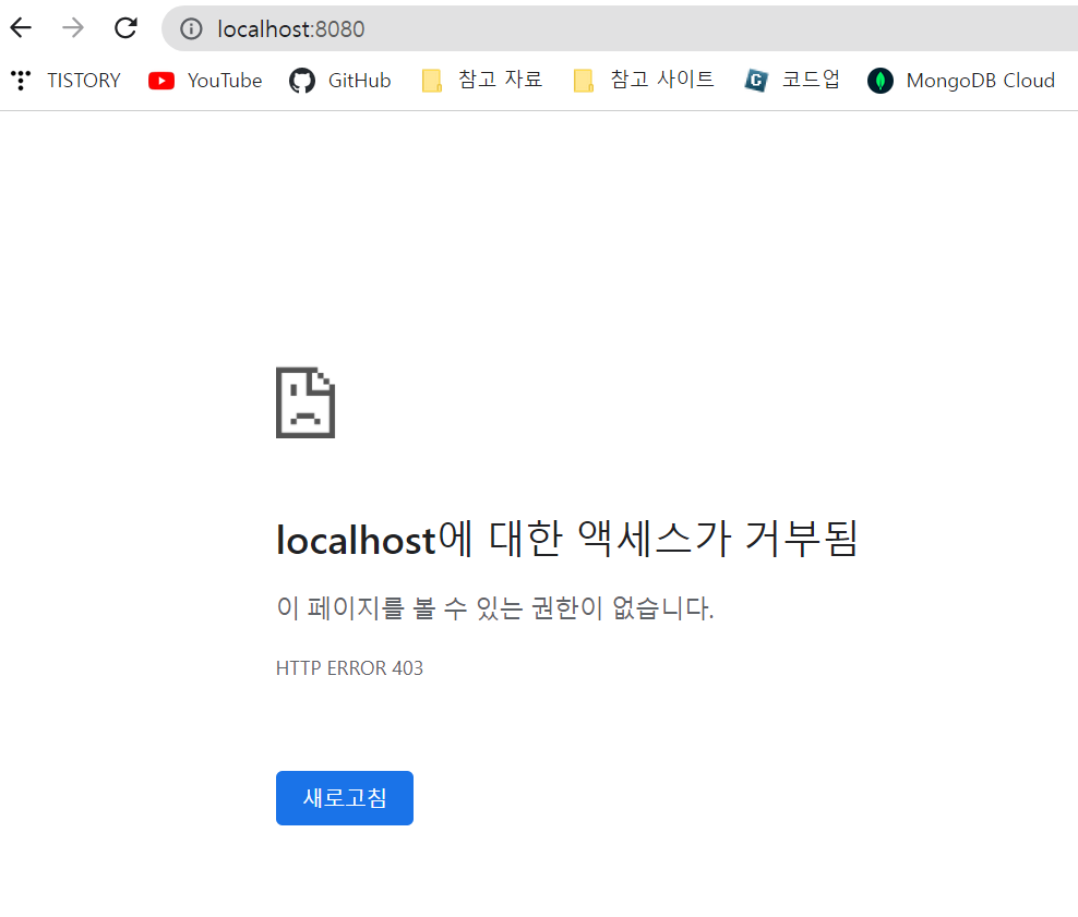 3. 설정 후 localhost:8080 주소로 접근하면 아래와 같은 화면이 뜨지만