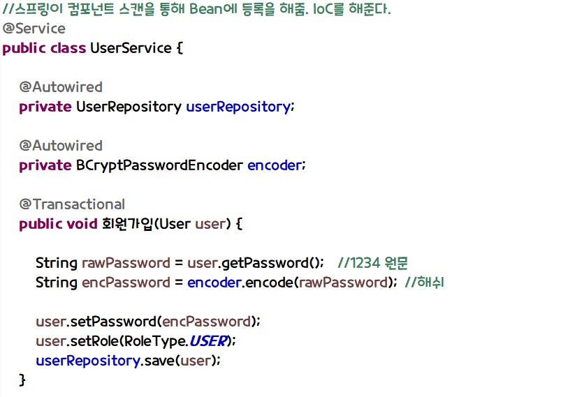3. UserService에 암호화 코드 작성