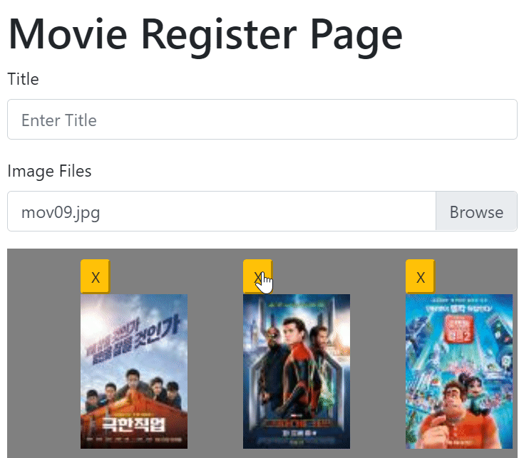- 영화 등록과 수정에는 파일 업로드 기능을 활용해서 영화 포스터 등을 등록하도록 함.