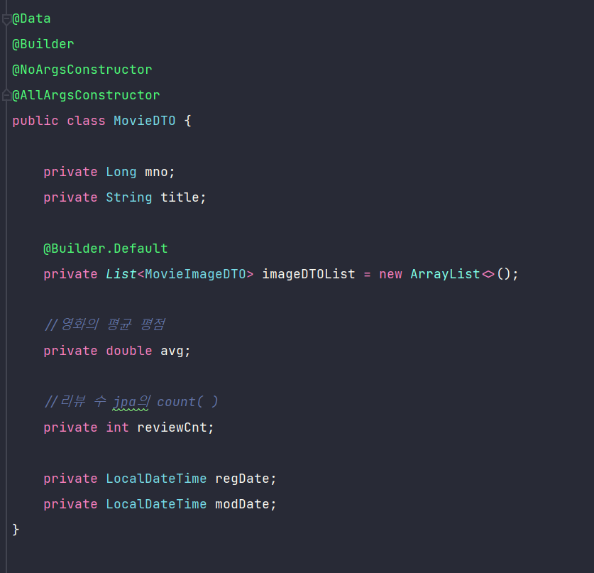 4. MovieDTO / MovieImageDTO 클래스 작성